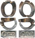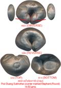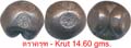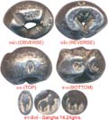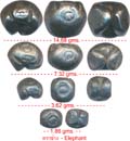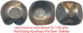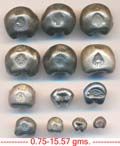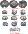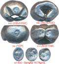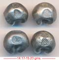 "1400-1800's A.D. Ayudhaya period, silver Pod Duang money, Song Salung(1/2 Baht), Pra Som Dokmai mark, weighs 7.03 gms., rare, excellent strikes, EF (1)"