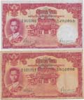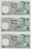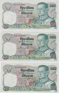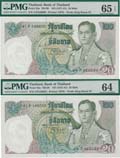 "Series IX 5,10,20,100 Baht black numeric #P70b, 71b, 72b & 73a, all signed 28 (small text) wmk. constitution; 5b. #M9 237714, 10b. #I26 112151 (minor repaired), 20b. #F16 022386 & 100b. #B4 019195, total 4 notes, light stains, folds. VF.(4)"