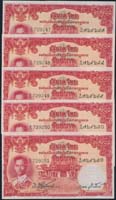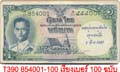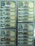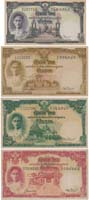 "รุ่น 9 ชนิดราคา 5,10,20,100 บาท เลขดำ พระพักตร์หนุ่ม ลายเซ็น วิวัฒน์-เล้ง (โทษเล็ก) ลายน้ำพาน; 5บ. #M9 237714, 10บ. #I26 112151 (ซ่อมเล็กน้อย), 20บ. #F16 022386 & 100บ. #B4 019195 รวม 4 ฉบับ มีคราบเหลืองและมีรอยพับ VF.(4)"