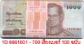 "ธนบัตรที่ระลึก 2560 สำนึกในพระมหากรุณาธิคุณฯ ร.9 ชนิดราคา 20 บาท, 50 บาท, 100 บาท, 500 บาท & 1000 บาท ชนิดราคาละ 100ฉบับ เรียงเบอร์ หมายเลข 9999801-900 เหมือนกันทุกแหนบทั้งหมด ลายเซ็น อภิศักดิ์-วิรไท ราคาหน้าธนบัตร 167,000บาท UNC.(500) ขายตามสภาพ"