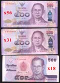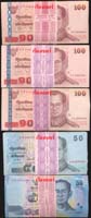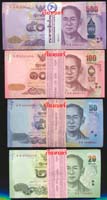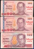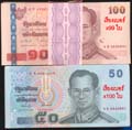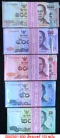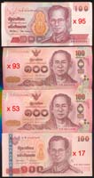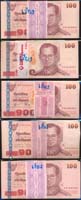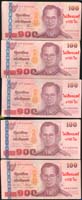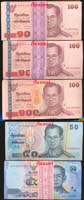 "Commemorative; 2017 Remembrance of King Rama IX 20B., 50B., 100B., 500B. & 1000B. P#130-134, each bundle x 100 notes in consecutive matched number 9999801-900 all signed Apisak-Veerathai, face value 167,000Baht. UNC.(500) Sold As Is "