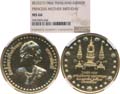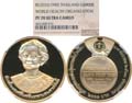 LOT NO: 2412 Starting: THB 40000 Approx: 1081 "2012 The Humanitarian Soil Scientist Award to King Bhumibol Gold proof coin 16,000 Baht, mintage 10,000 pcs. Proof.(1) NGC PF69UC" "2555 รางวัลนักวิทยาศาสตร์ดินเพื่อมนุษธรรม เหรียญทองคำขัดเงา ชนิดราคา 16,000 บาท จำนวนผลิต 10,000 เหรียญ Proof.(1) NGC PF69UC" |