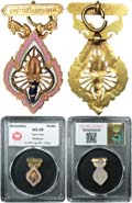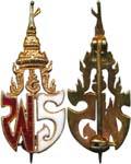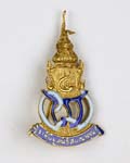 Royal Insignia Ratchawanlop gold insignia decorated with red ribbon. Excellent condition.(1) ป้าย ราชวัลลภ ป้ายทองคำบนแพรแถบสีแดง สภาพดีมาก (1) |